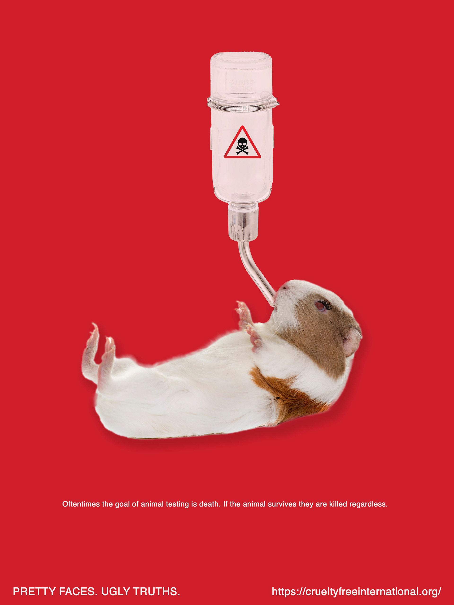 This assignment focused on creating a Call to Action Poster Series. Cruelty Free International, an organization that advocates against animal testing, was selected as the subject. The posters are intentionally shocking—some might even consider them disturbing—but that level of intensity is exactly what’s needed to turn heads and capture attention in a time when many prefer to look the other way.