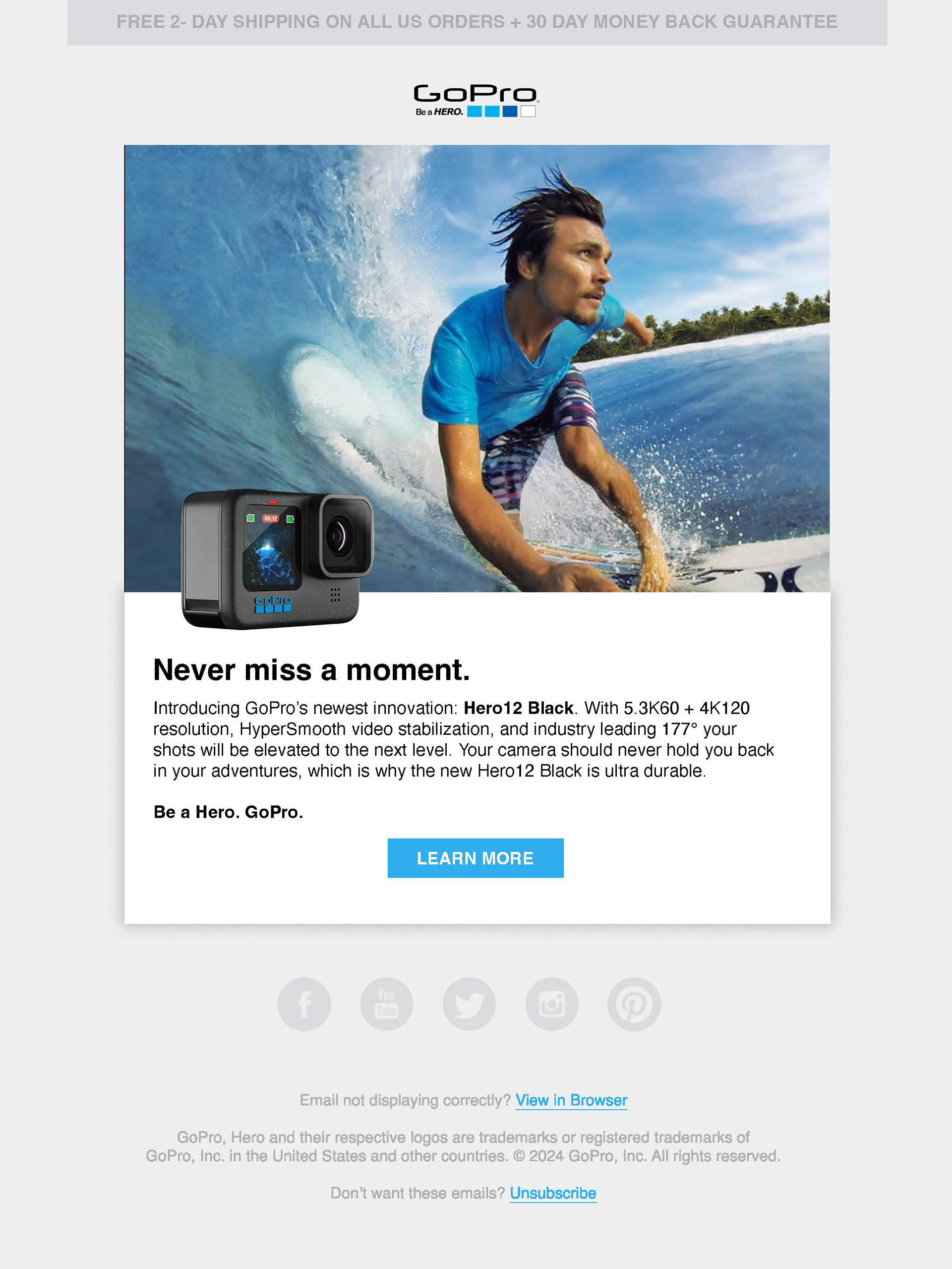 Central to the campaign is the tagline “Relive Your Adrenaline,” which reinforces GoPro’s emphasis on living in the moment and experiencing it again through the footage captured.