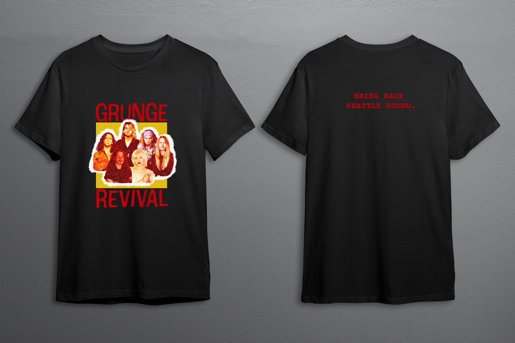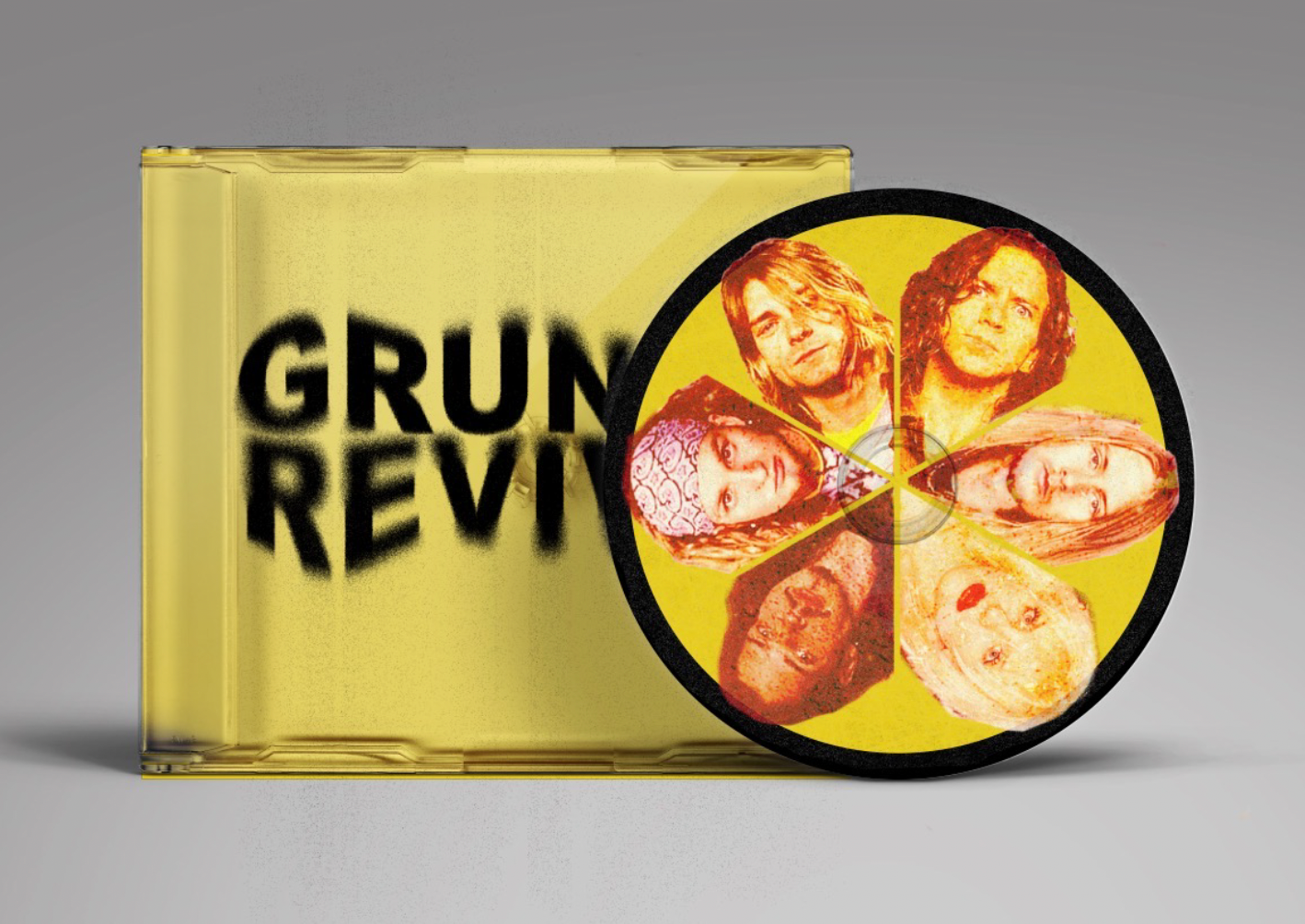 The final collection honors the raw, unpolished aesthetic of grunge while presenting a cohesive set of promotional materials. Each piece—poster, t‑shirt, or CD design—shares the same visual identity, rooted in the textures, typography, and mood of the genre. By adapting the artwork across formats, the designs stand out in any context: bold when hung on a wall and equally striking when worn or carried. This project demonstrates my ability to research a style, translate its cultural essence into design, and execute a unified collection that is both authentic and impactful.