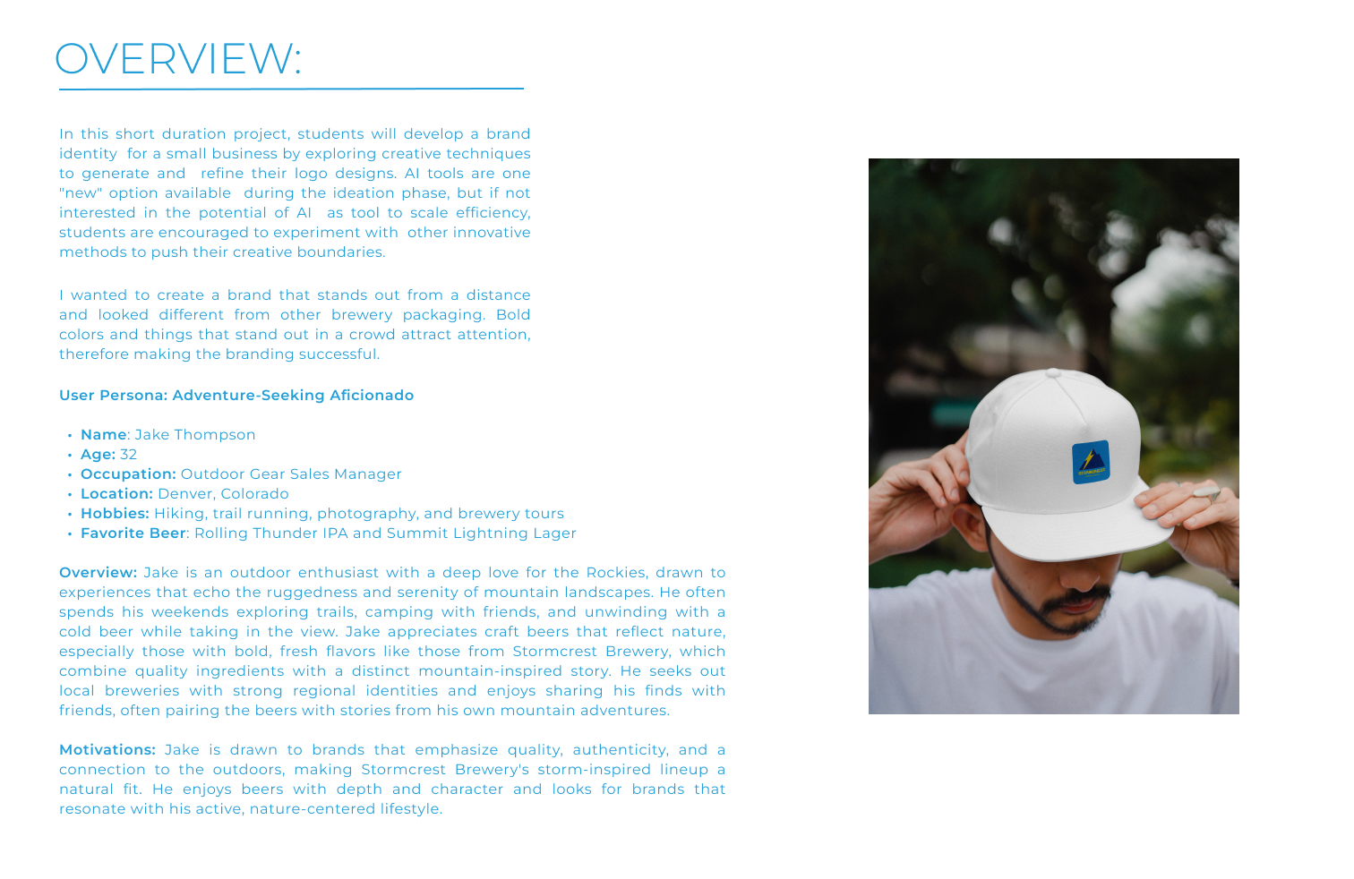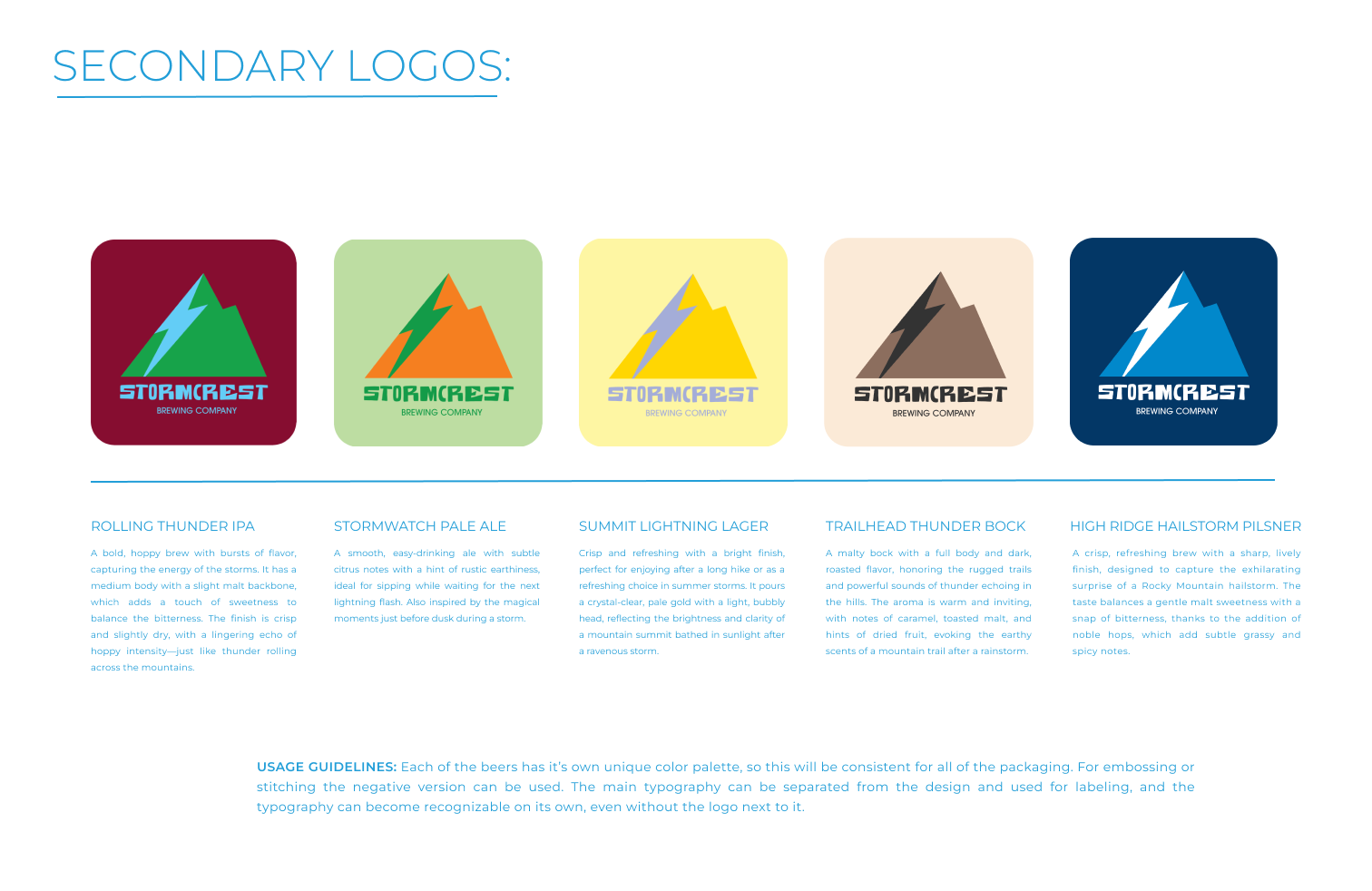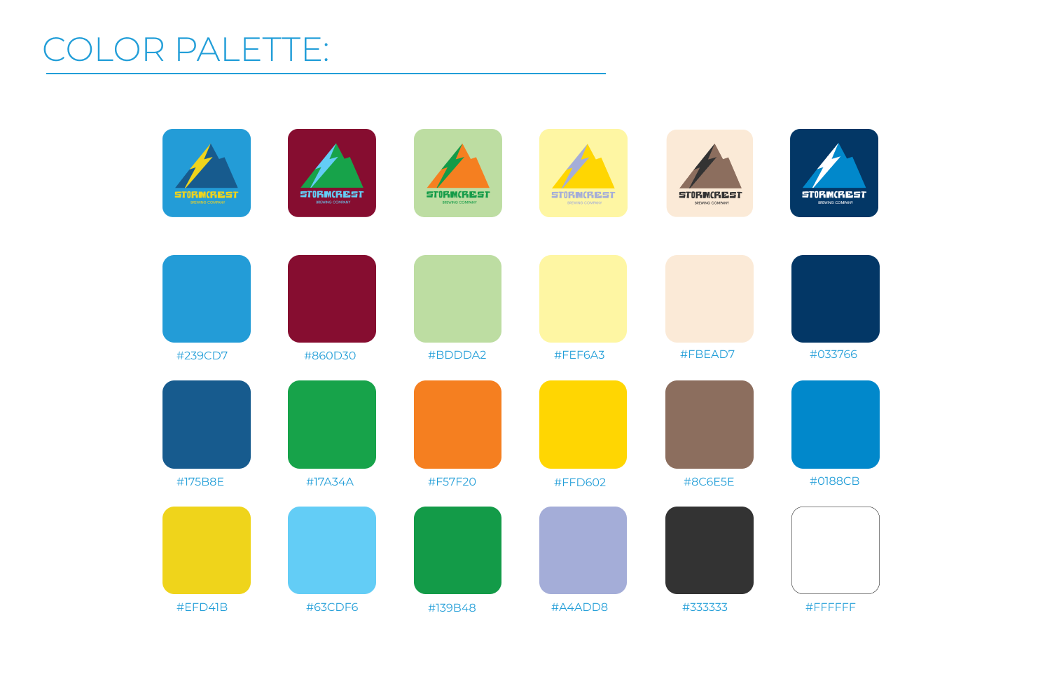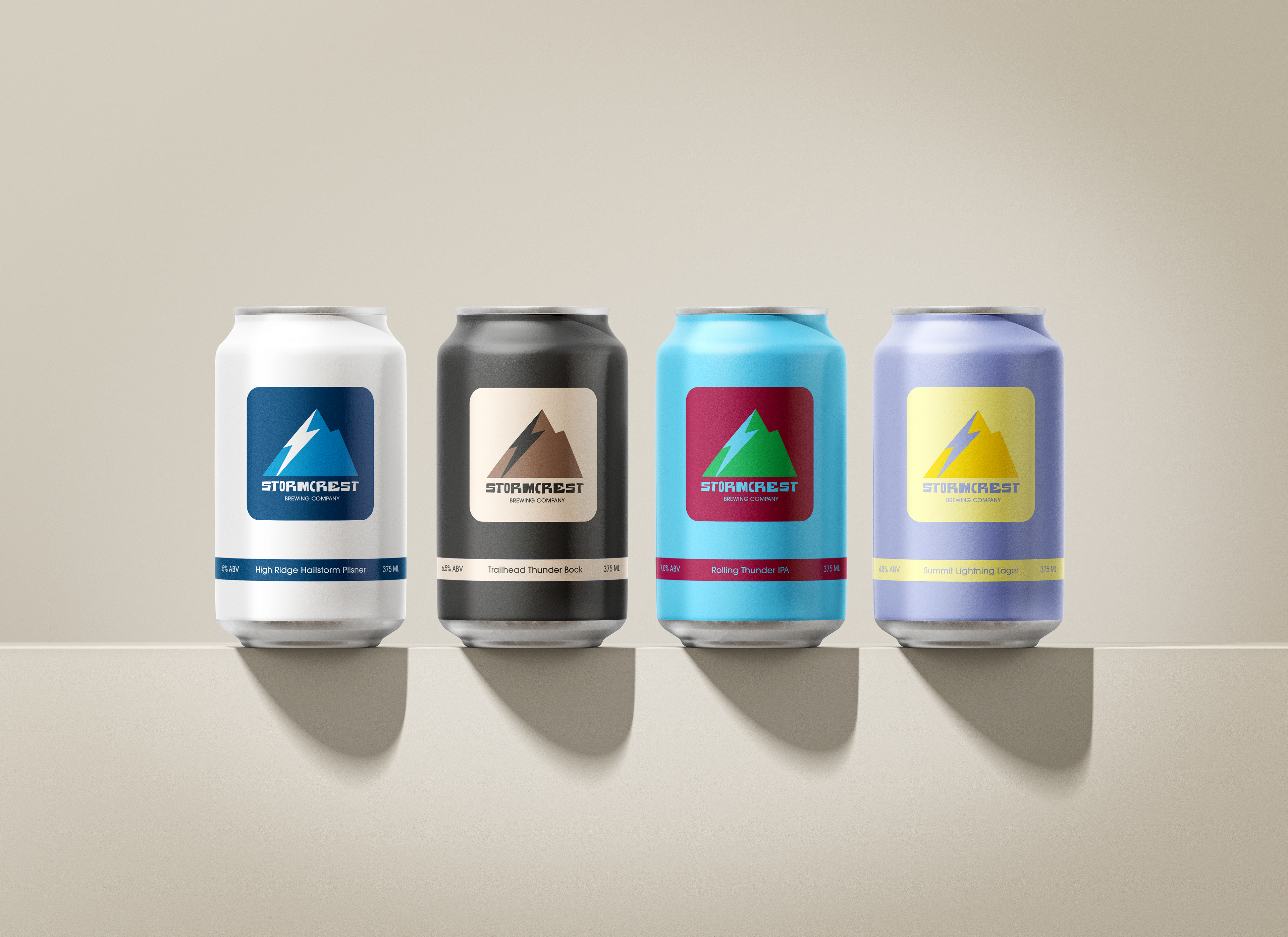 Stormcrest Brewing Company is an original brand concept inspired by a family tradition rooted in the Rocky Mountains. In Grand Lake, CO, a young girl and her father would sit together and watch storms roll across the peaks. These moments became a cherished ritual, and her father, an avid homebrewer, crafted beers to accompany the evenings. Years later, once the girl was old enough to share a drink with her father, she transformed those memories into a brand. Each brew is designed to capture the essence of a different storm, reflecting both its flavor and atmosphere through distinctive design choices.